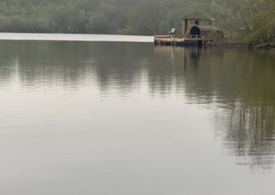 It was blowing a gale at the time as we had a massive low pressure system last autumn and this was on the tail end. I hoped to get onto the lake as I needed to find out more information about the lake. Mid afternoon the skies eased a bit and the sun shone through a little. The Raptor was launched into a new chapter of my life and the echo-sounder soon registered depths down to 15ft and I soon found 20ft close to the outlet. That’ll do nicely!