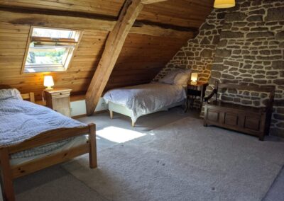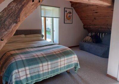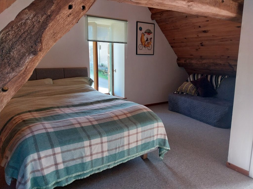 The self-catering cottage offers a comfortable and practical space for your stay. It includes two bedrooms, each set up with one double bed and one single bed. There are also two shower rooms, with one connected directly to a bedroom. Two sofa beds downstairs increase capacity, allowing up to eight guests in total.