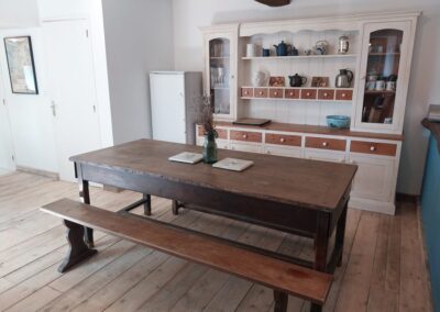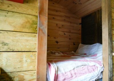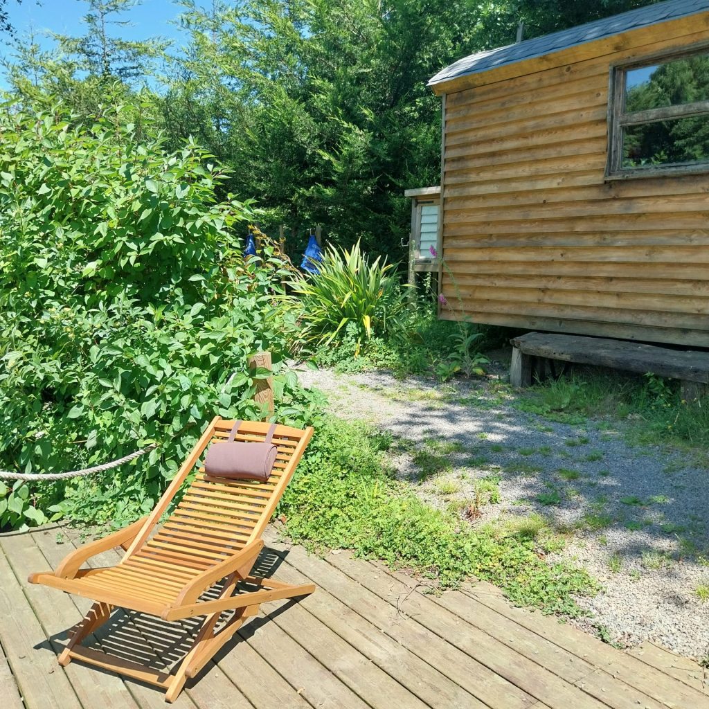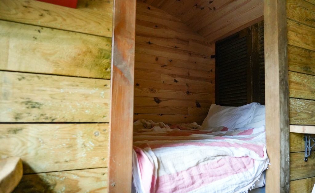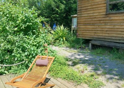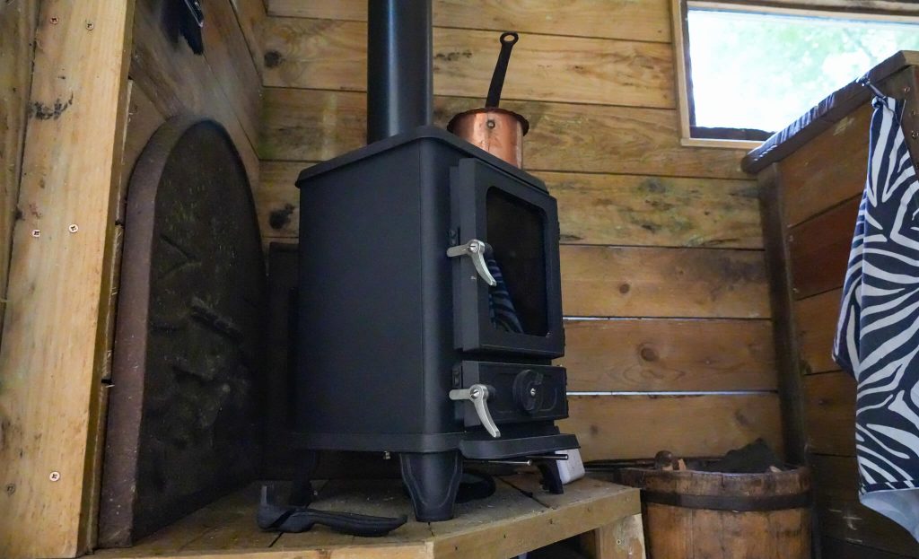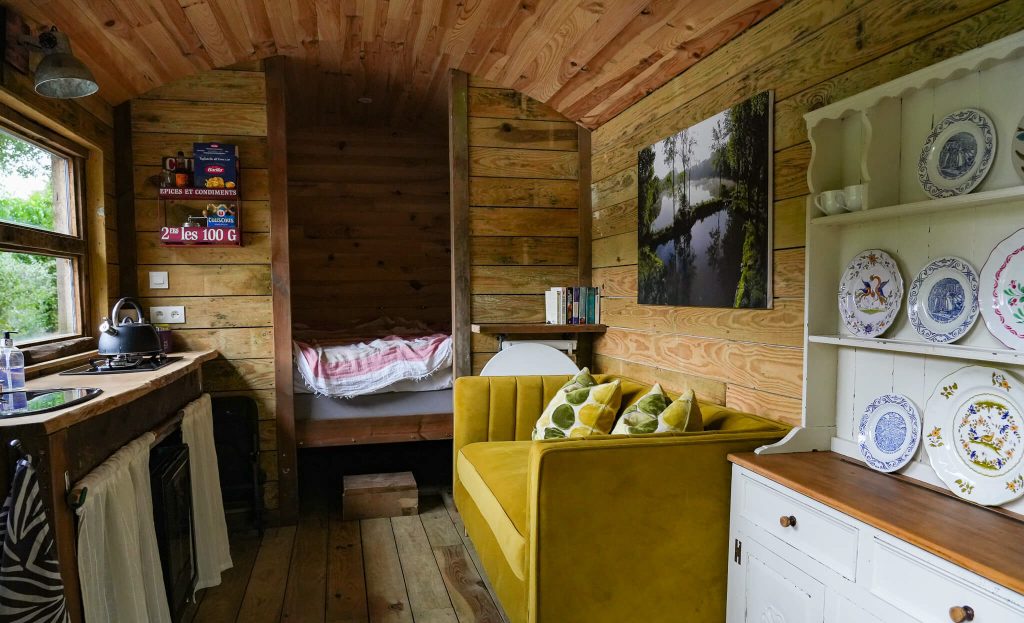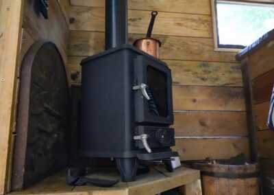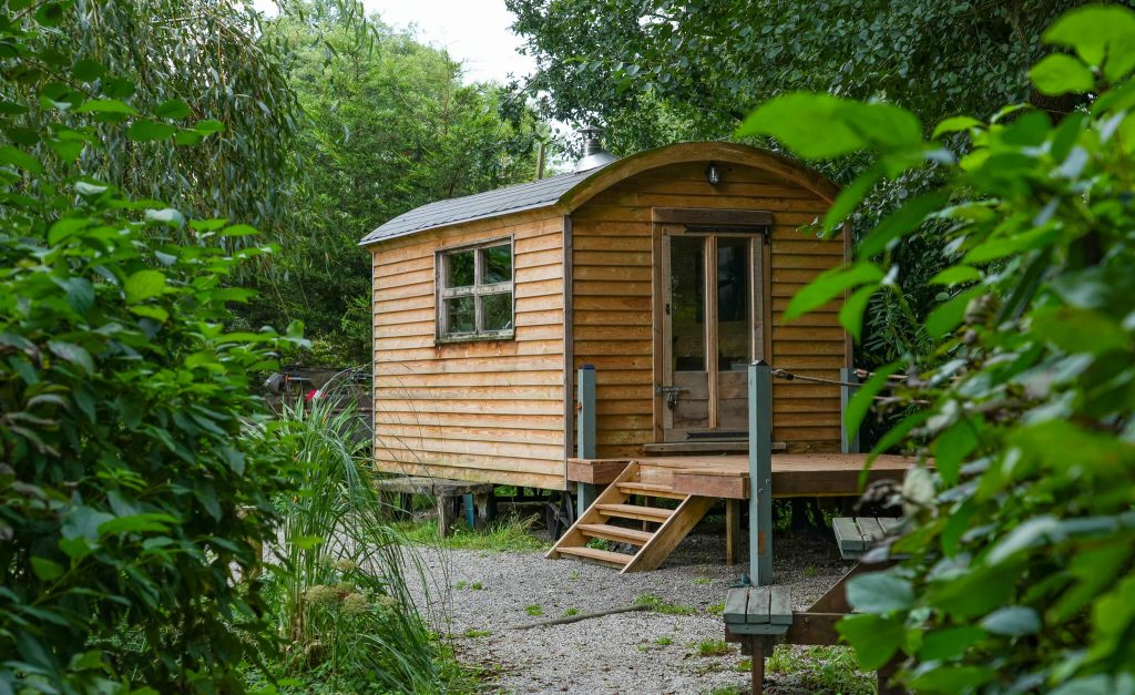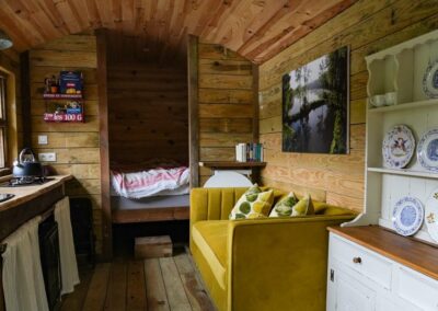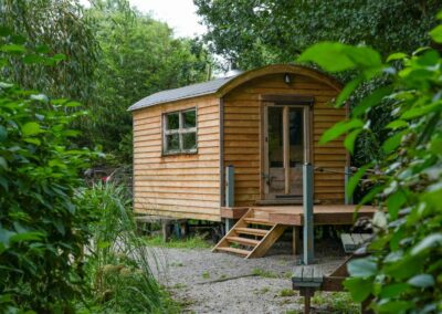 Guests staying in the shepherd’s hut have use of a nearby dry toilet and an outdoor shower located beside the hut.