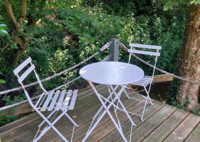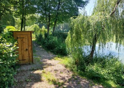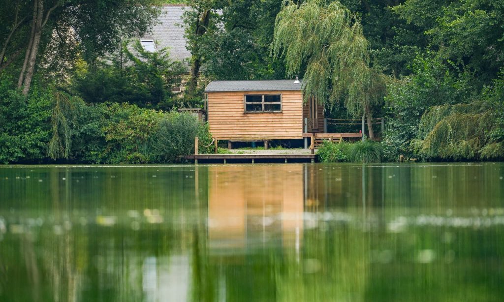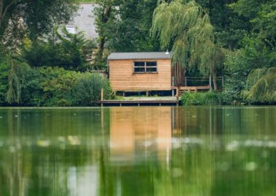 This latest addition sits right by the water, complete with its own raised decking area overlooking the lake. Inside, you will find a double bed, a small sofa, and a compact kitchenette. A log burner keeps the space warm, while large views across the lake create a calm setting.