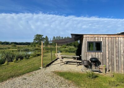 Just a short walk from the island and swims, you’ll find our convenient facilities block. Here you’ll have access to a hot shower, eco-friendly toilet, fridge/freezer, microwave, and mains-supplied water and electricity — everything you need for a comfortable and relaxed stay.