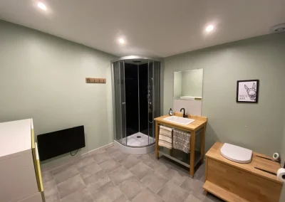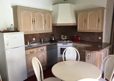 The gîte is fully self-contained and accessed via a private driveway. It includes a well-equipped kitchen, bathroom, lounge area with TV/DVD, and a cosy wood burner — perfect for relaxing after a day at the lake.